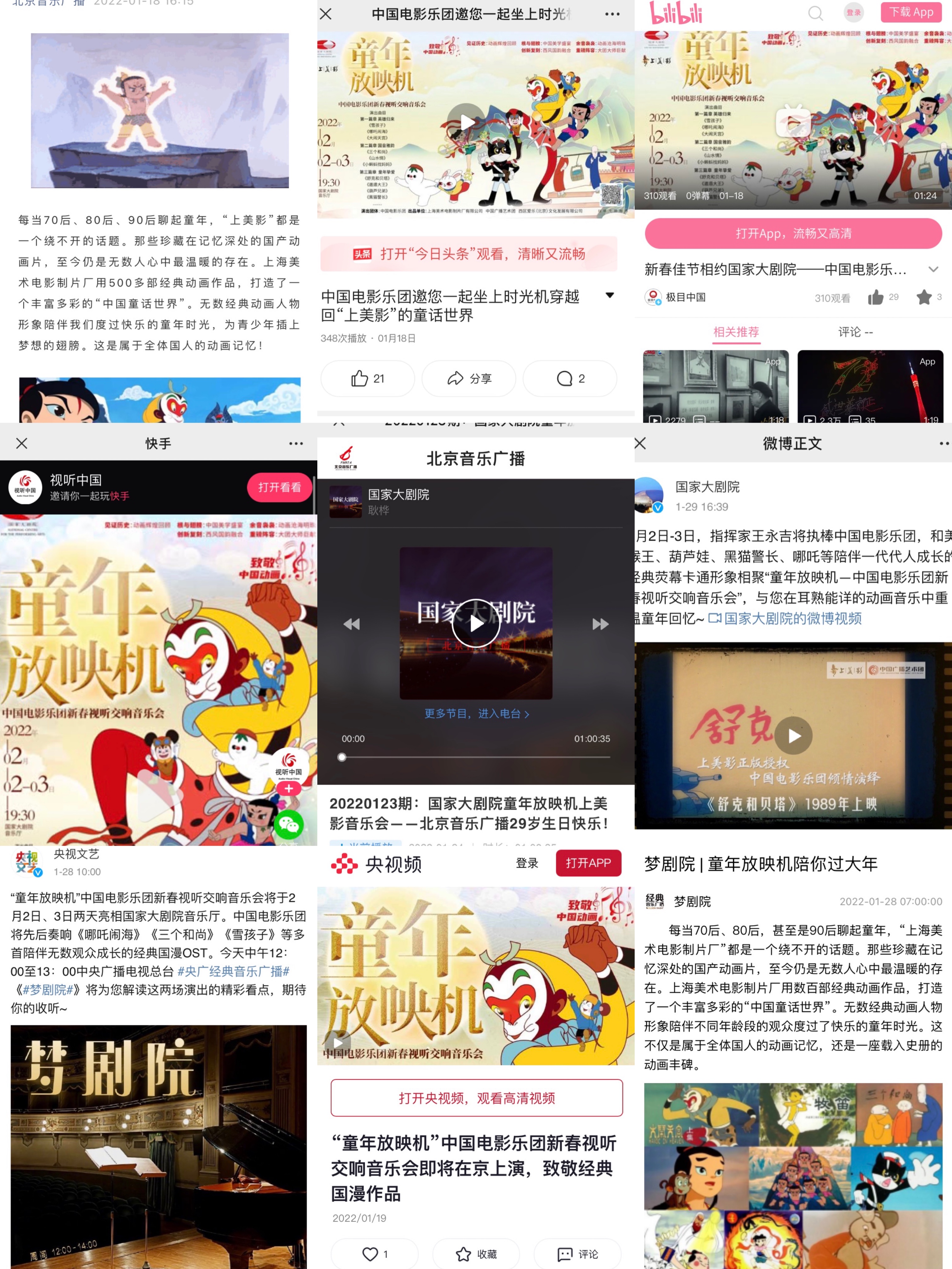 入選了“世界上100部最偉大的動畫片”,獲得了400多個國內外動畫大獎的上海美術電影制片廠——擁有六十五年的歷史。2022年恰逢中國動畫百年,中國電影樂團與上海美術電影制片廠聯合打造《英雄歸來》——“致敬中國動畫百年”上美影經典動畫交響音樂會,用中西融合的形式,將《黑貓警長》、《哪吒鬧海》、《葫蘆兄弟》、《大鬧天宮》等多部上美影經典動畫片的音樂搬上舞臺,在“復刻”的基礎上創新融合。