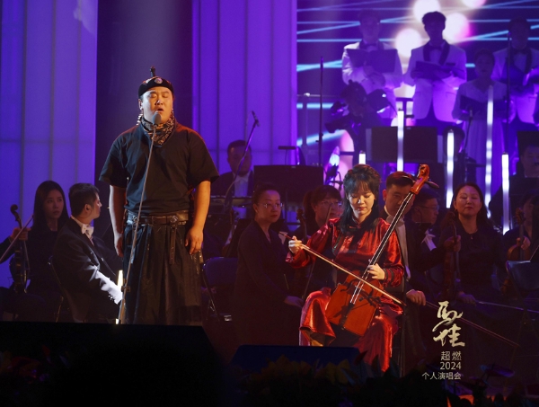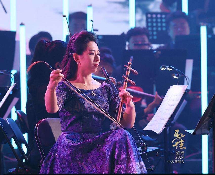 同時(shí),來(lái)自《聲入人心》的七位兄弟也齊聚一堂,與馬佳共同演唱了經(jīng)典曲目《不說(shuō)再見(jiàn)》和《前方高能組曲》,為整場(chǎng)演出增添了無(wú)限活力。馬佳與呼麥演唱家德格金一起演唱《烏蘭巴托的夜》,展現(xiàn)了獨(dú)特的民族音樂(lè)風(fēng)格,而候愷弈的馬頭琴演奏更是為現(xiàn)場(chǎng)增添了一絲悠遠(yuǎn)與古韻,讓觀(guān)眾仿佛置身于遼闊的草原。嗩吶演奏家周藝翔和琵琶演奏家張瑋祺合奏《云宮迅音》,胡琴演奏家孔偉娟演奏《武家坡2021》,為整場(chǎng)演出注入了更多的傳統(tǒng)創(chuàng)新元素。中國(guó)廣播藝術(shù)團(tuán)青年歌唱演員王紫凝帶來(lái)的《Rolling in deep》、《The Prayer》,讓每位觀(guān)眾都感受到激情與感動(dòng)的交織。整場(chǎng)演出不僅展現(xiàn)了馬佳的音樂(lè)才華,也體現(xiàn)了各位音樂(lè)家對(duì)音樂(lè)的熱愛(ài)與追求,令人難以忘懷。